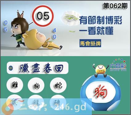 062期正版彩图挂:05爆:狗挂牌成语:腊尽春回挂牌出肖:鸡狗蛇鼠龙猪