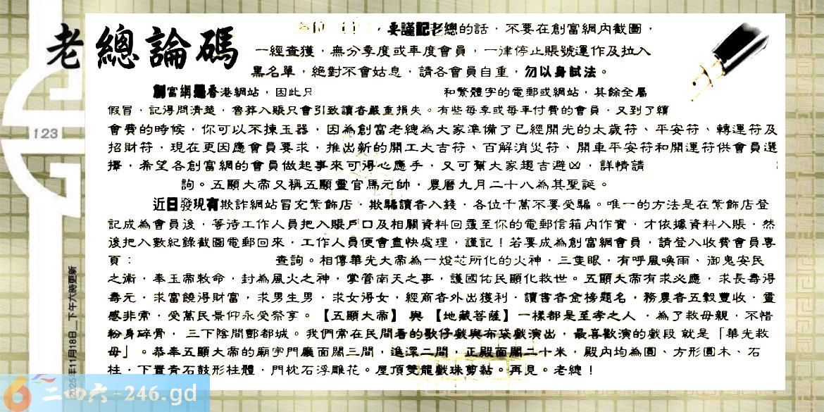 123期:六合皇金句/老总论码/萧公子/林大师/五行夺码/老总信箱截图