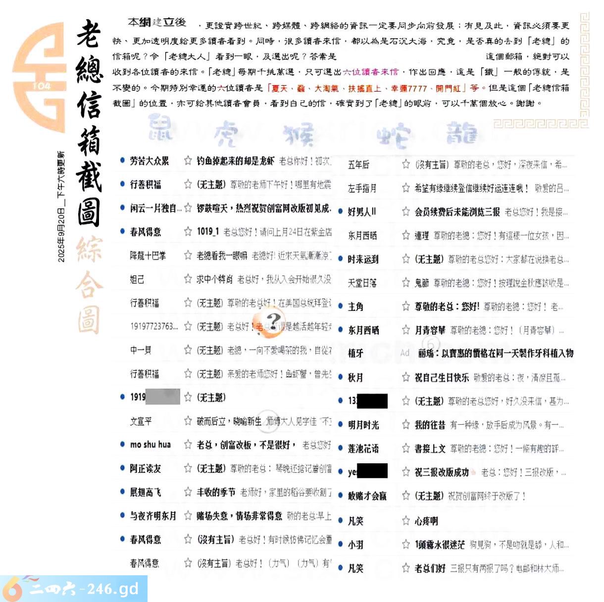 2025105期105期:彩民推荐〖貼信讀者論壇〗