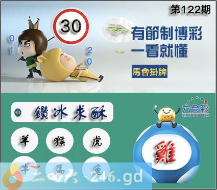122期正版彩图挂:30 爆:鸡 挂牌成语:钻冰求酥 挂牌出肖:羊猴虎牛马兔