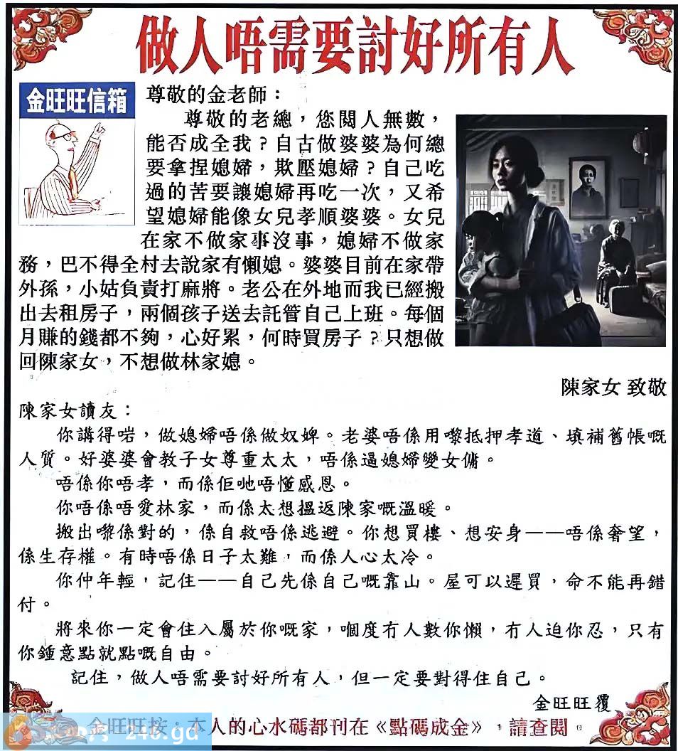 2025126期126期:金旺旺信箱彩民推荐→→《做人唔需要討好所有人》